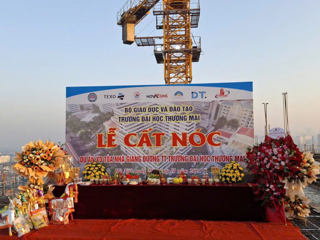 LỄ CẤT NÓC TÒA NHÀ GIẢNG ĐƯỜNG TRUNG TÂM TRƯỜNG ĐẠI HỌC THƯƠNG MẠI